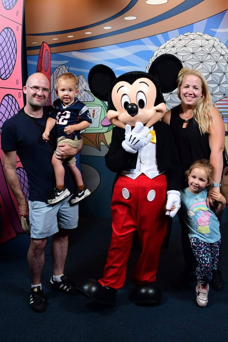 We vervolgen de weg richting de exit. Op de Disney app zien we dat er geen wachtrij meer is om met Mickey Mouse op de foto te kunnen. Nou vooruit die pakken we dan ook nog wel even mee tot grote vreugd van Robin en Logan.
