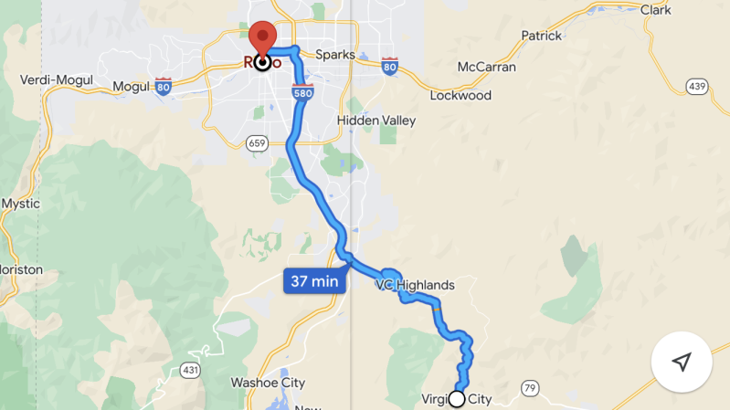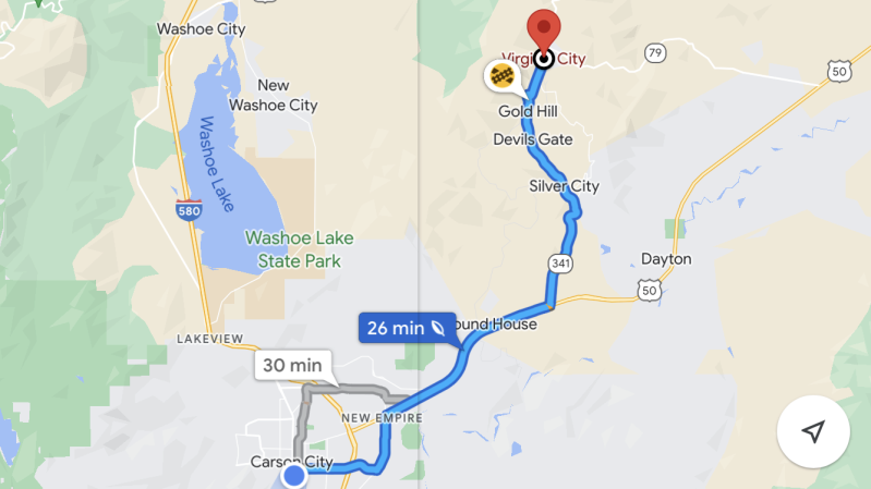 Na het ontbijt stellen we de navigatie in naar Gold Hill en Virginia City.