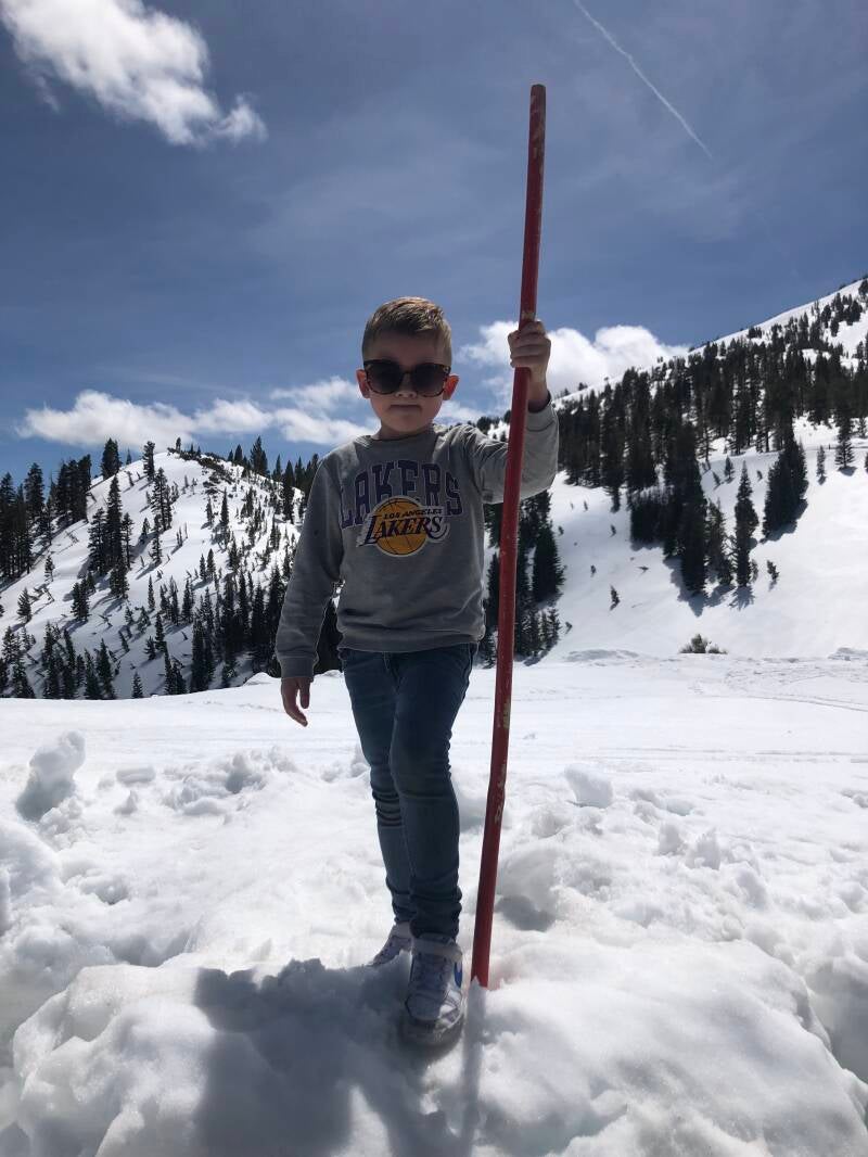 Wederom kiezen we voor een "Scenic Route" die ons via een bergpas tot 2000 meter hoogte brengt. We belanden hier in een waar sneeuw landschap. Langs de kant van de weg zijn er regelmatig sneeuw wanden van een paar meter hoog, enkel de weg is sneeuwvrij gemaakt. We nemen een kleine omweg en rijden naar het hoogst mogenlijke punt. Als we hier aankomen zien we een prachtige witte omgeving waar volop geskiet wordt. De kids kunnen niet wachten om uit de auto te gaan en in de sneeuw te spelen. Al is dit van korte tijd want de zon schijnt fel en weerkaatst op het witte sneeuw waardoor we snel last hebben van onze ogen.