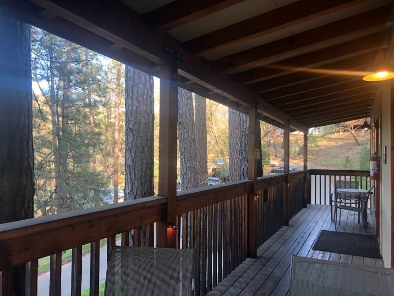 Rond 4 komen we eindelijk bij onze eindbestemming aan "Yosemite Bug Mountain Resort" We hebben een cabin gehuurd welke gelegen is in de bossen vlak voor de ingang van Yosemite National Park. De ligging is werkelijk prachtig en de cabin is super leuk ingericht. De kids vinden het meteen geweldig en gaan op ontdekkingstocht in de omgeving. Al snel vinden ze een tafeltennis tafel. Voor ons de mogelijkheid om onze benen te strekken op het balkon van de cabin.
